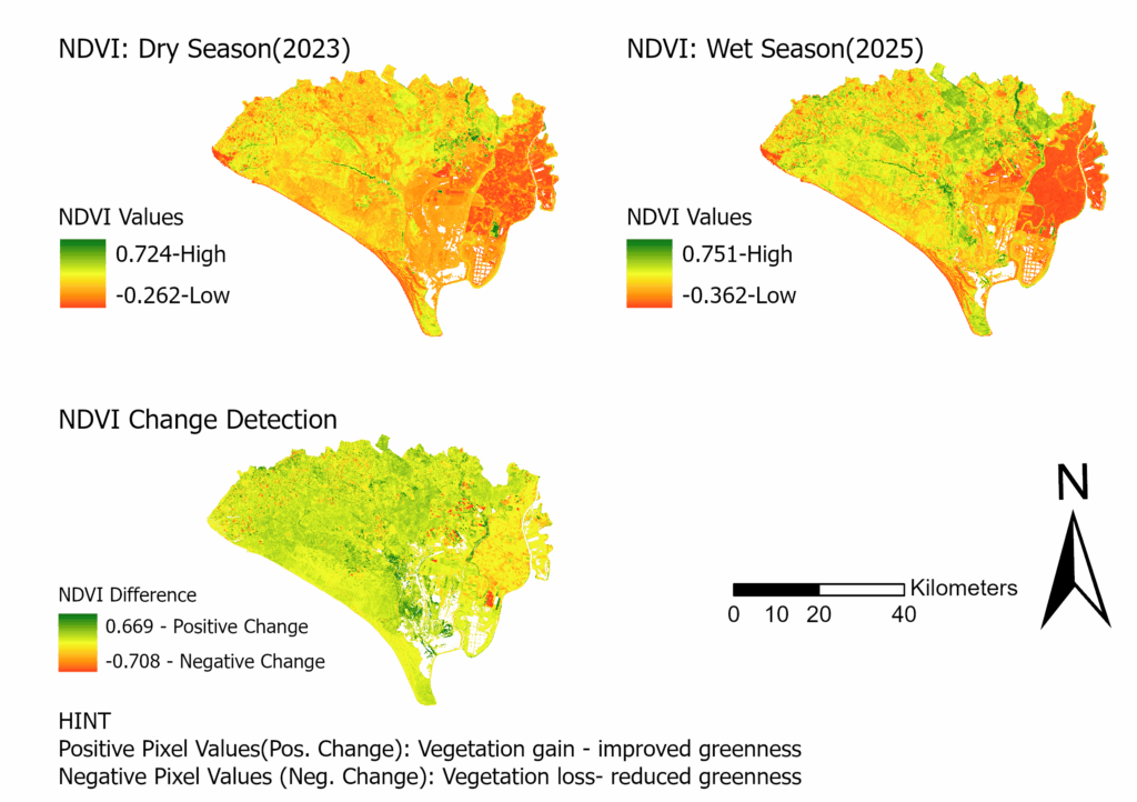 - Images from both dry and wet seasons were analyzed to detect changes in vegetation cover.