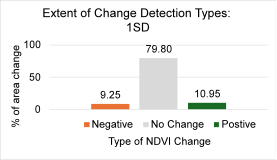- Change detection was performed to classify areas with increased vegetation, decreased vegetation, or no change.